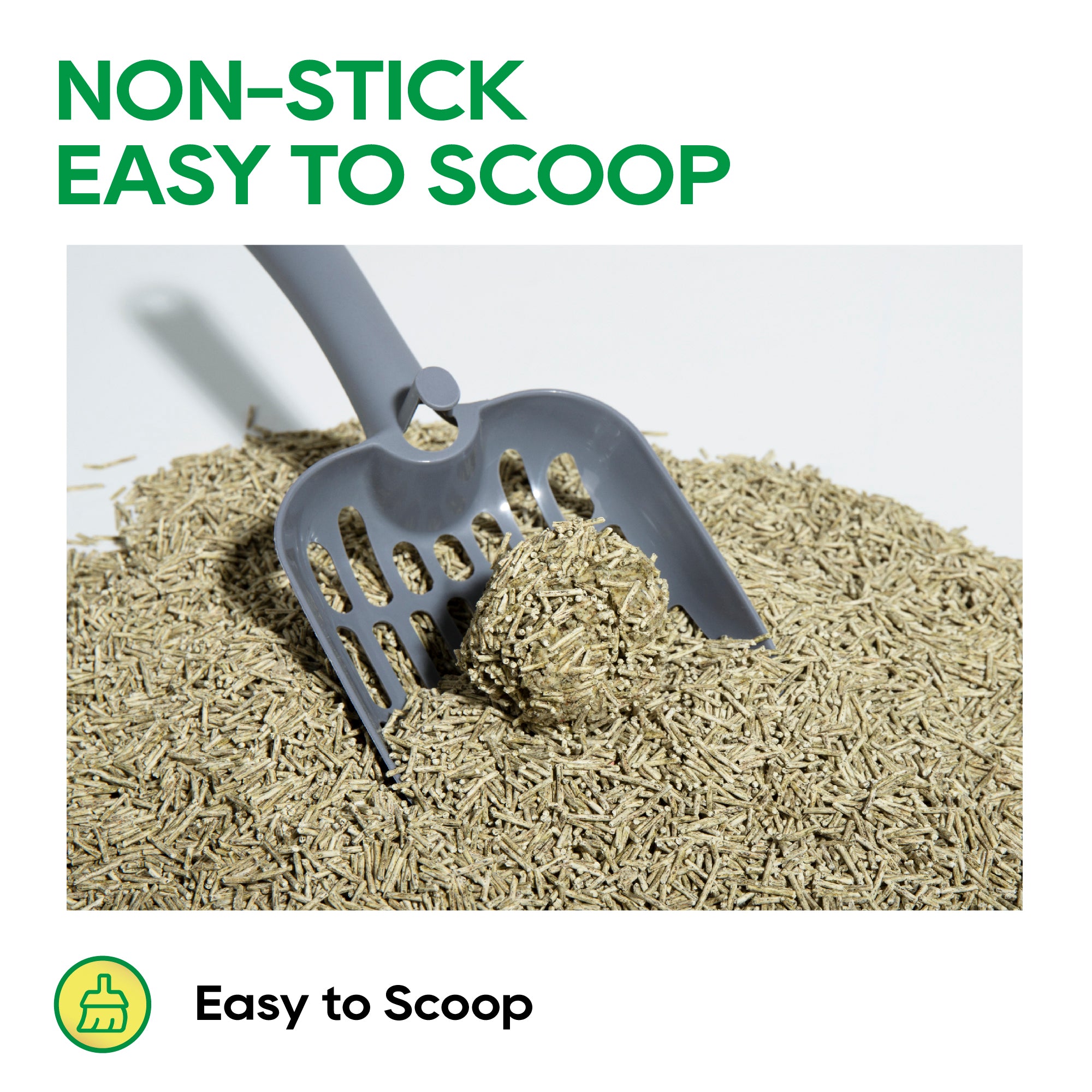 Our formula clumps tightly in seconds and doesn’t stick to the bottom of the box. Cleanup is fast and easy!